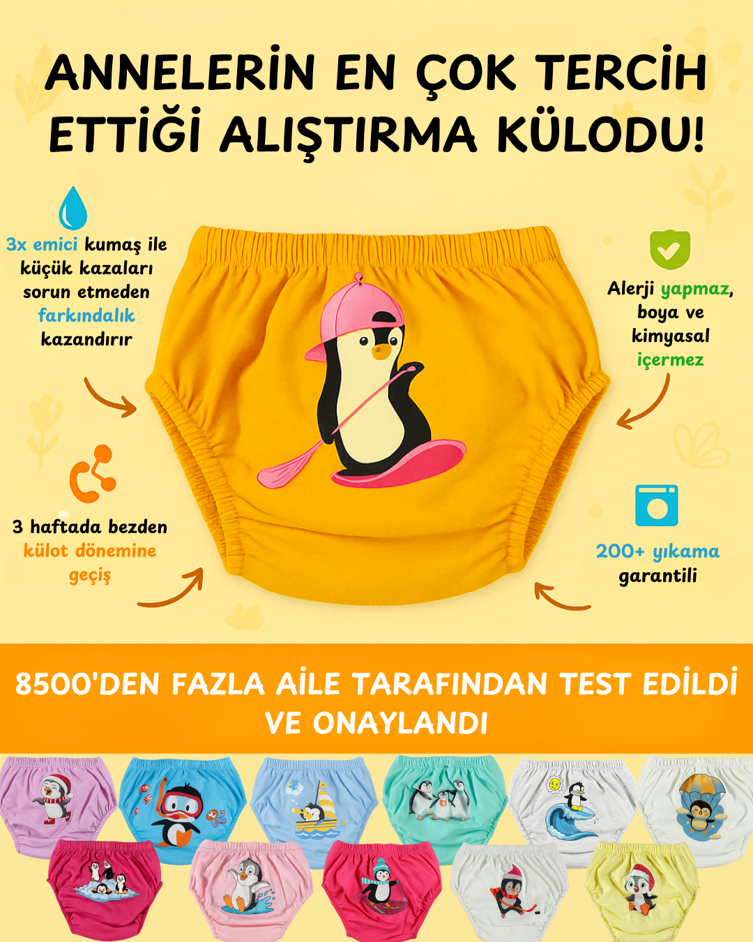 Küçük kaçırmalarda koruma sağlar, aynı zamanda çocuğun bağımsızlık hissini ve tuvalet farkındalığını geliştirir. 🌿